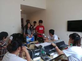 新生收费工作中,暑假期间分5次为新生制卡共报盘3389张,成功制卡3386张,为银行代扣及新生今后在学期间奖助学金转账发放等打下了基础。新生报到期间,对收费地点、网络设施、收费设备、人员安排、时间安排等方面做了周密部署,并提前两天入驻指定地点进行服务收费。